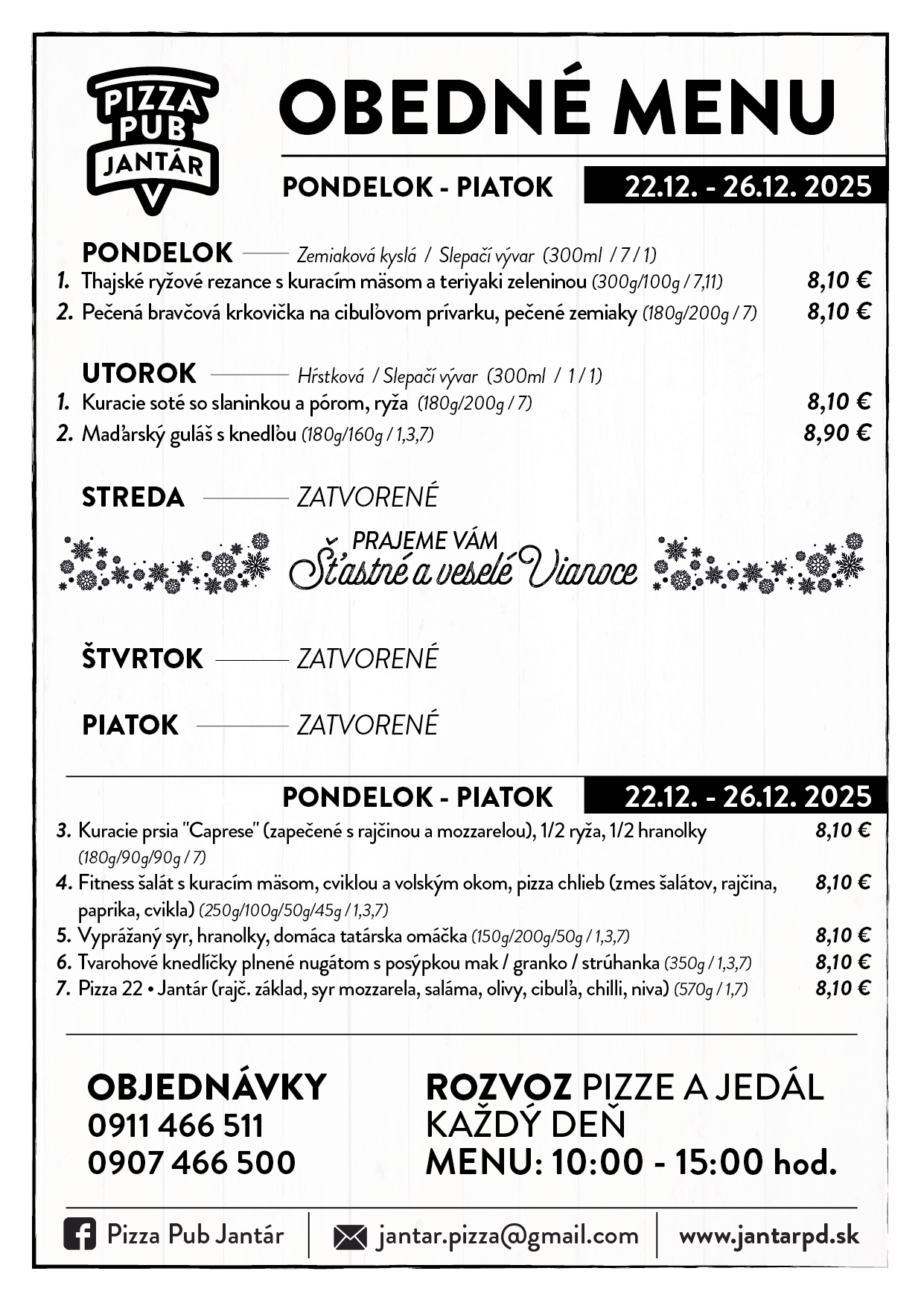 OBEDOVÉ MENU 22.12.2025 - 26.12.2025