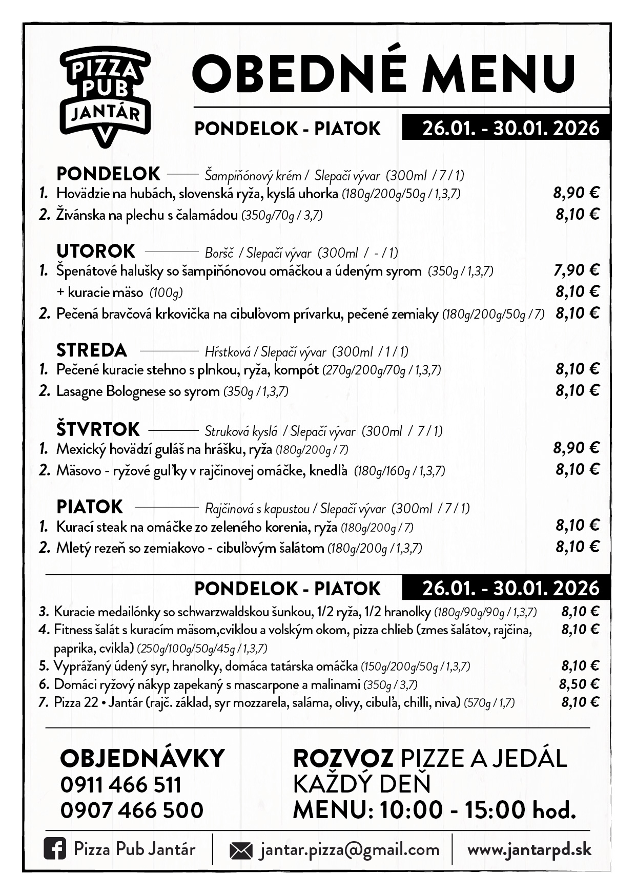 Jedálny lístokOBEDOVÉ MENU 26.01.2026 - 30.01.2026
