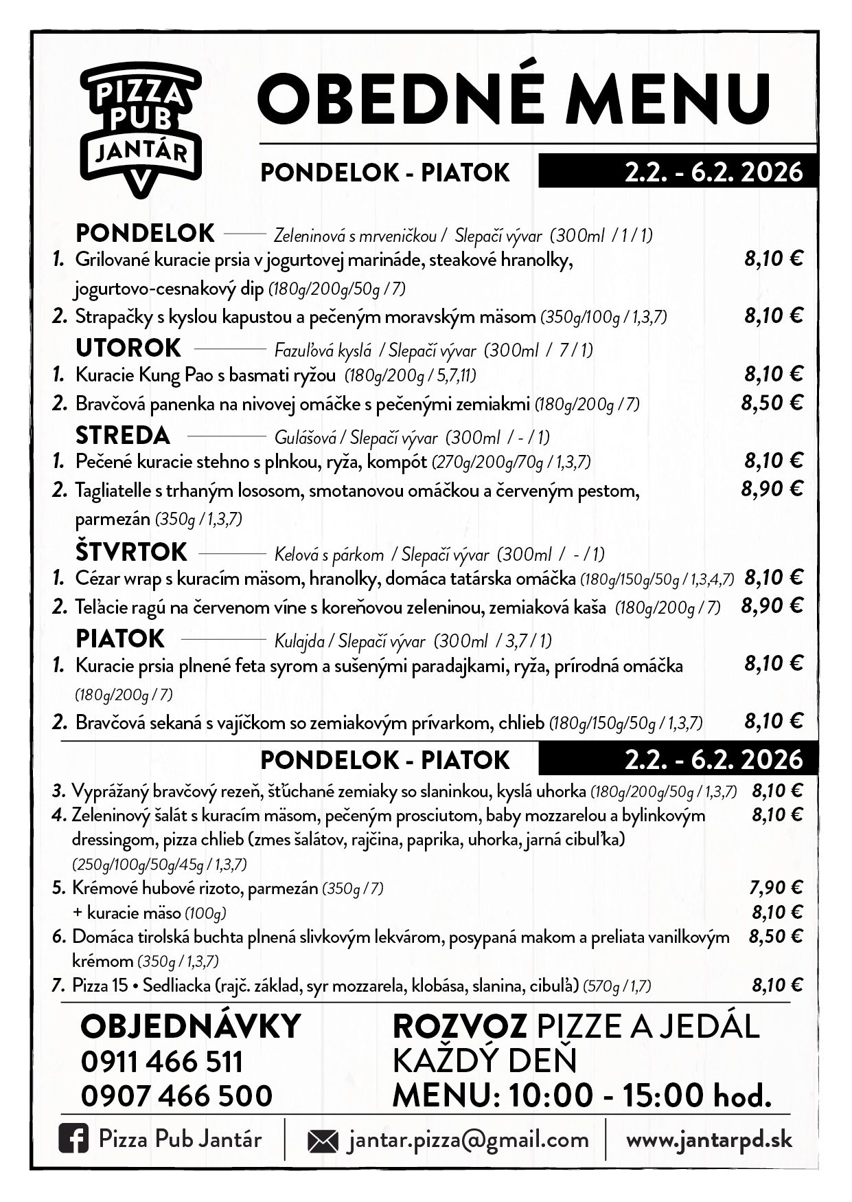 Jedálny lístokOBEDOVÉ MENU 02.02.2026 - 06.02.2026