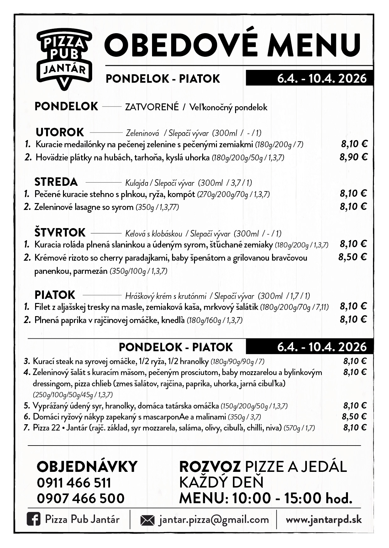 Jedálny lístokOBEDOVÉ MENU 06.04.2026 - 10.04.2026