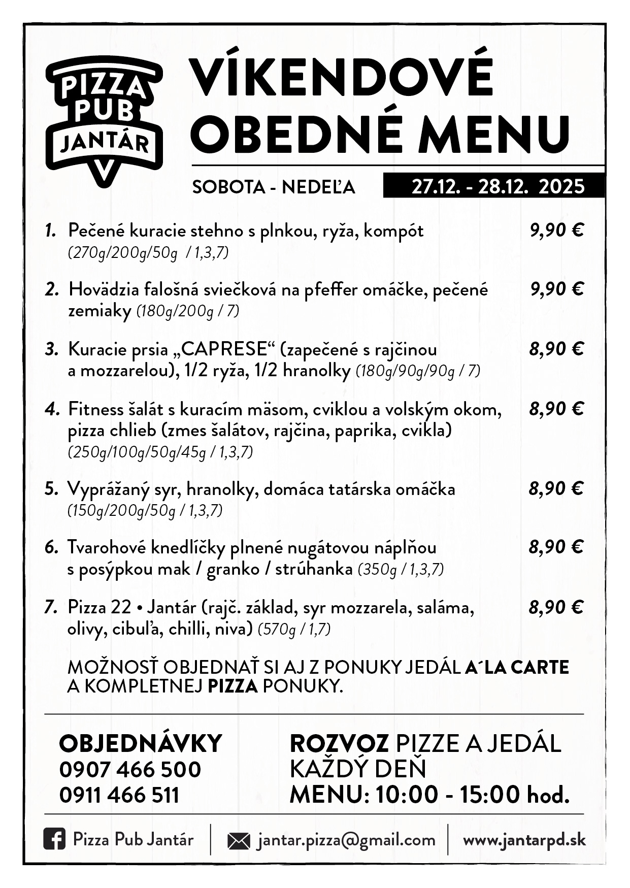 OBEDOVÉ MENU 27.12.2025 - 28.12.2025