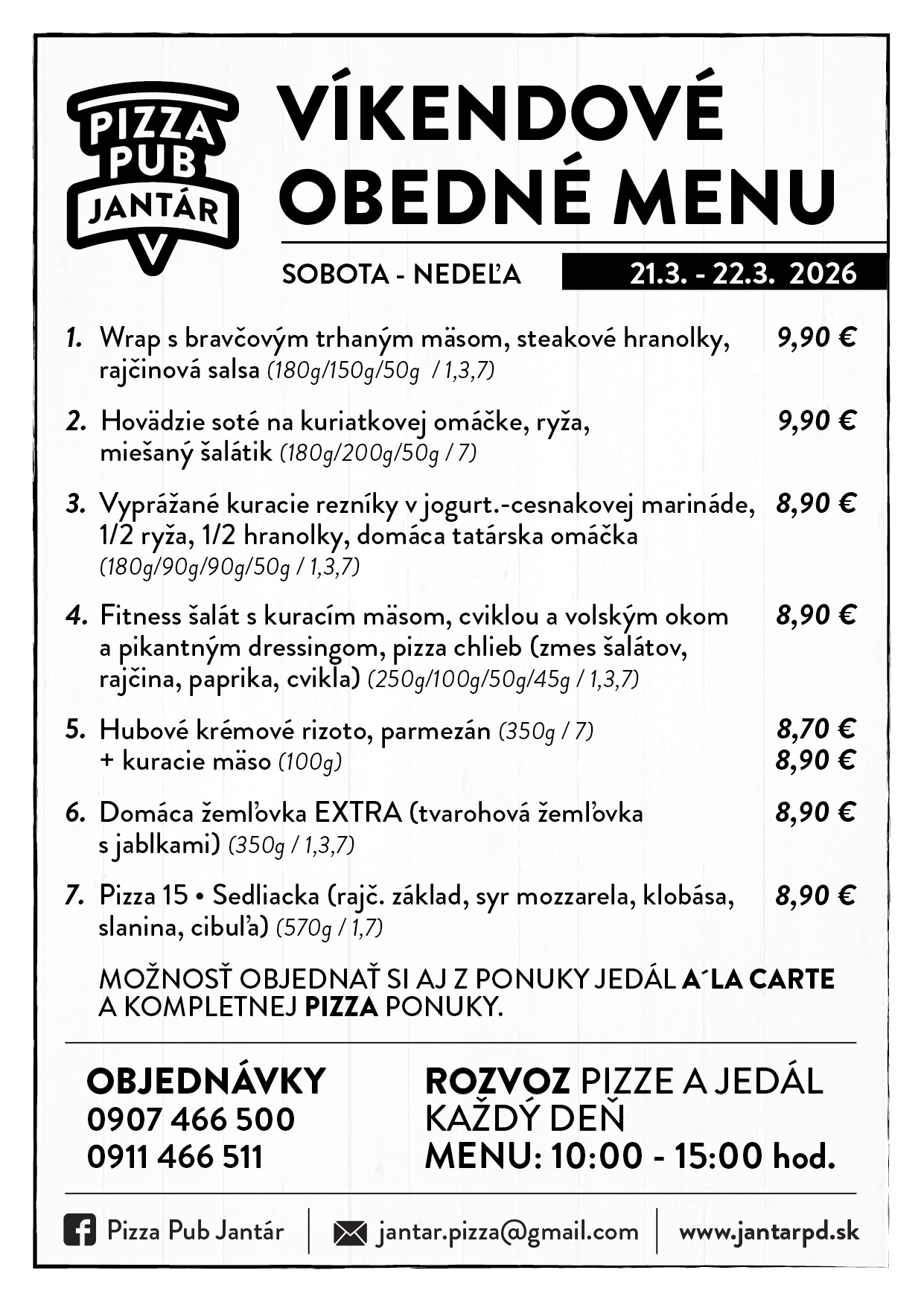 Jedálny lístokOBEDOVÉ MENU 21.03.2026 - 22.03.2026