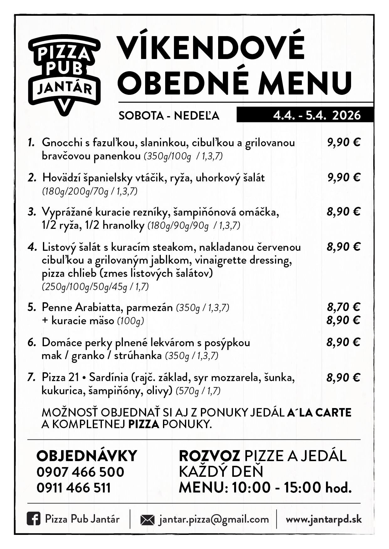 Jedálny lístokOBEDOVÉ MENU 04.04.2026 - 05.04.2026