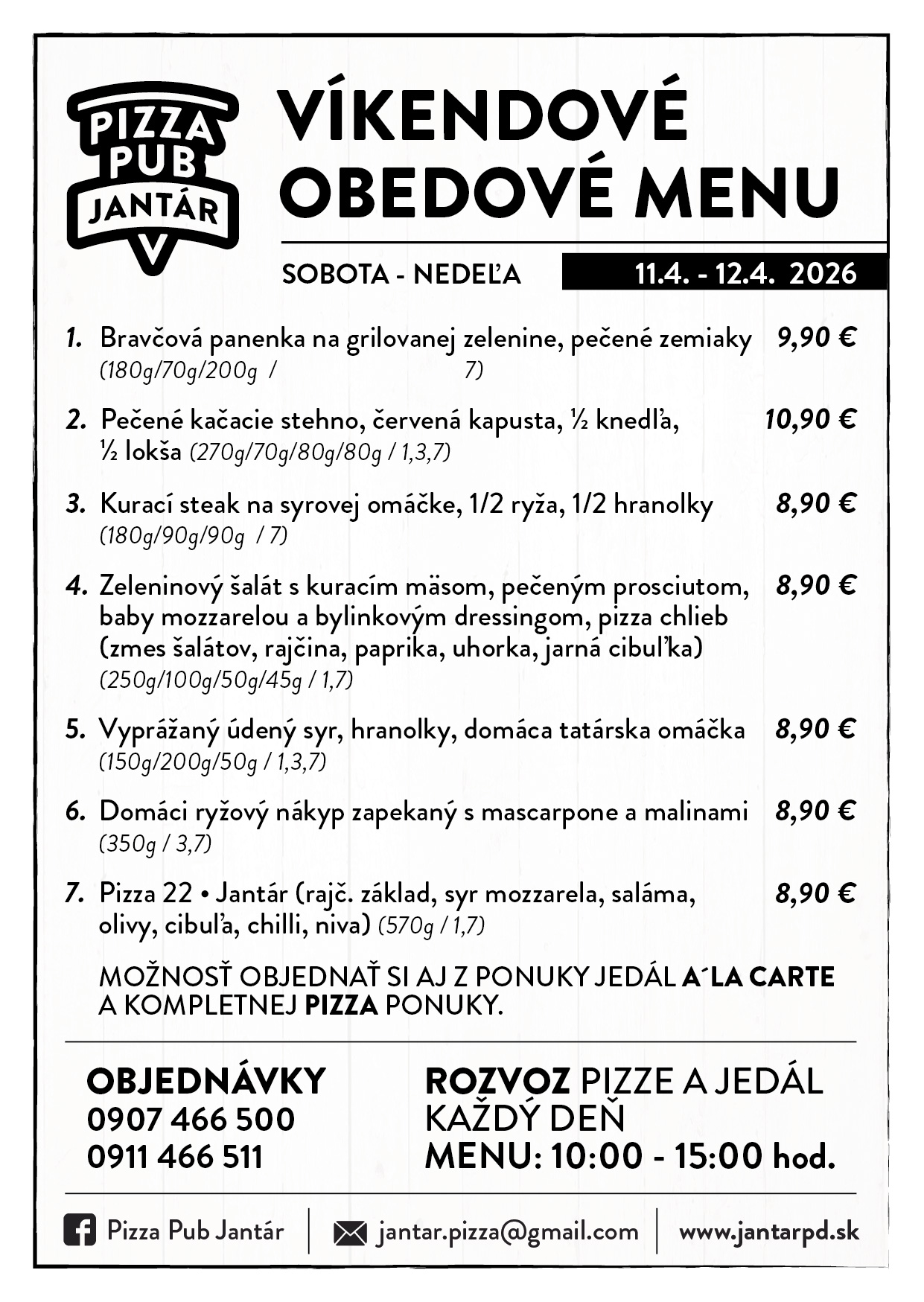 Jedálny lístokOBEDOVÉ MENU 11.04.2026 - 12.04.2026