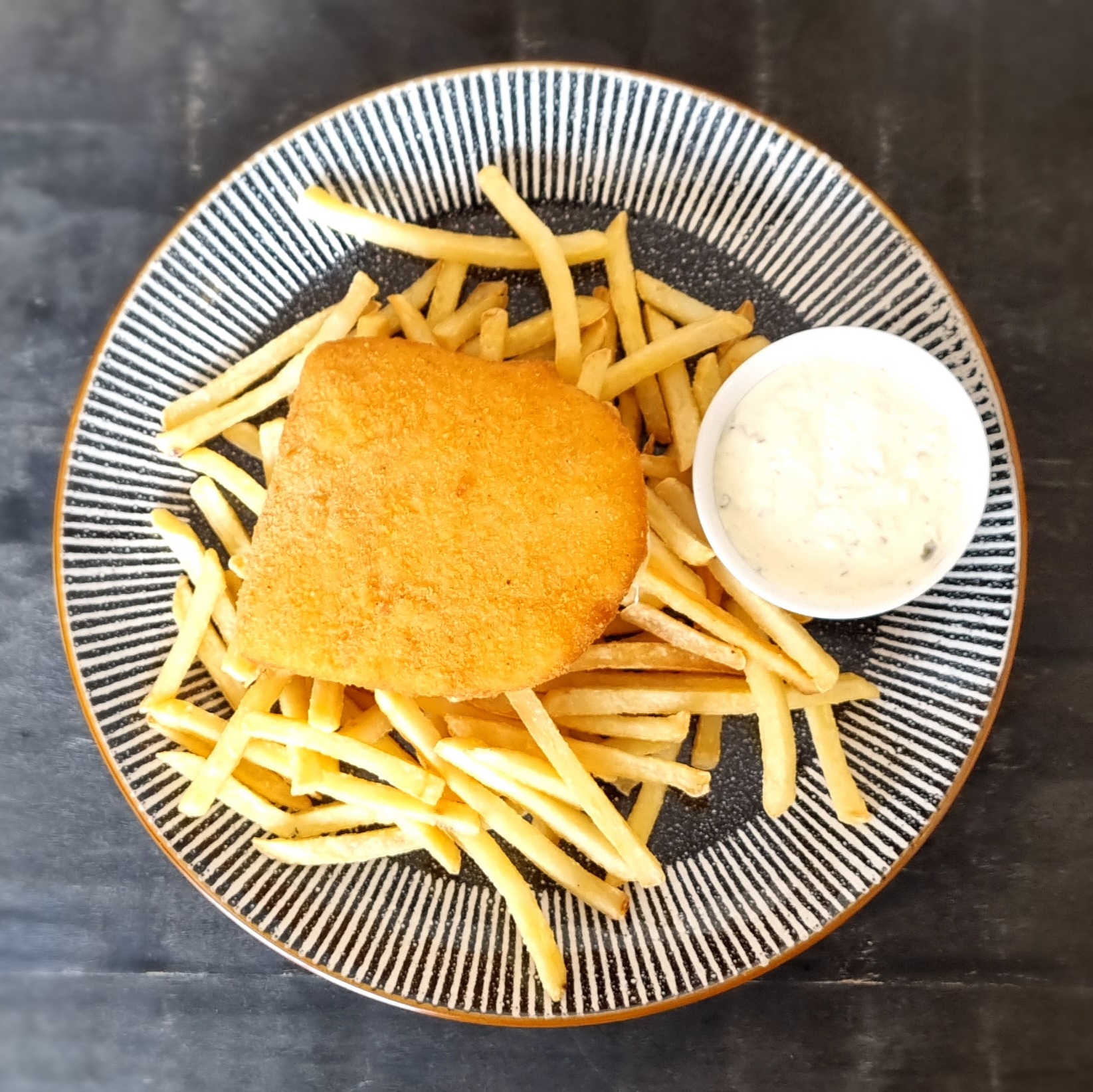 5. Vyprážaný syr s hranolkami a domácou tatárskou omáčkou