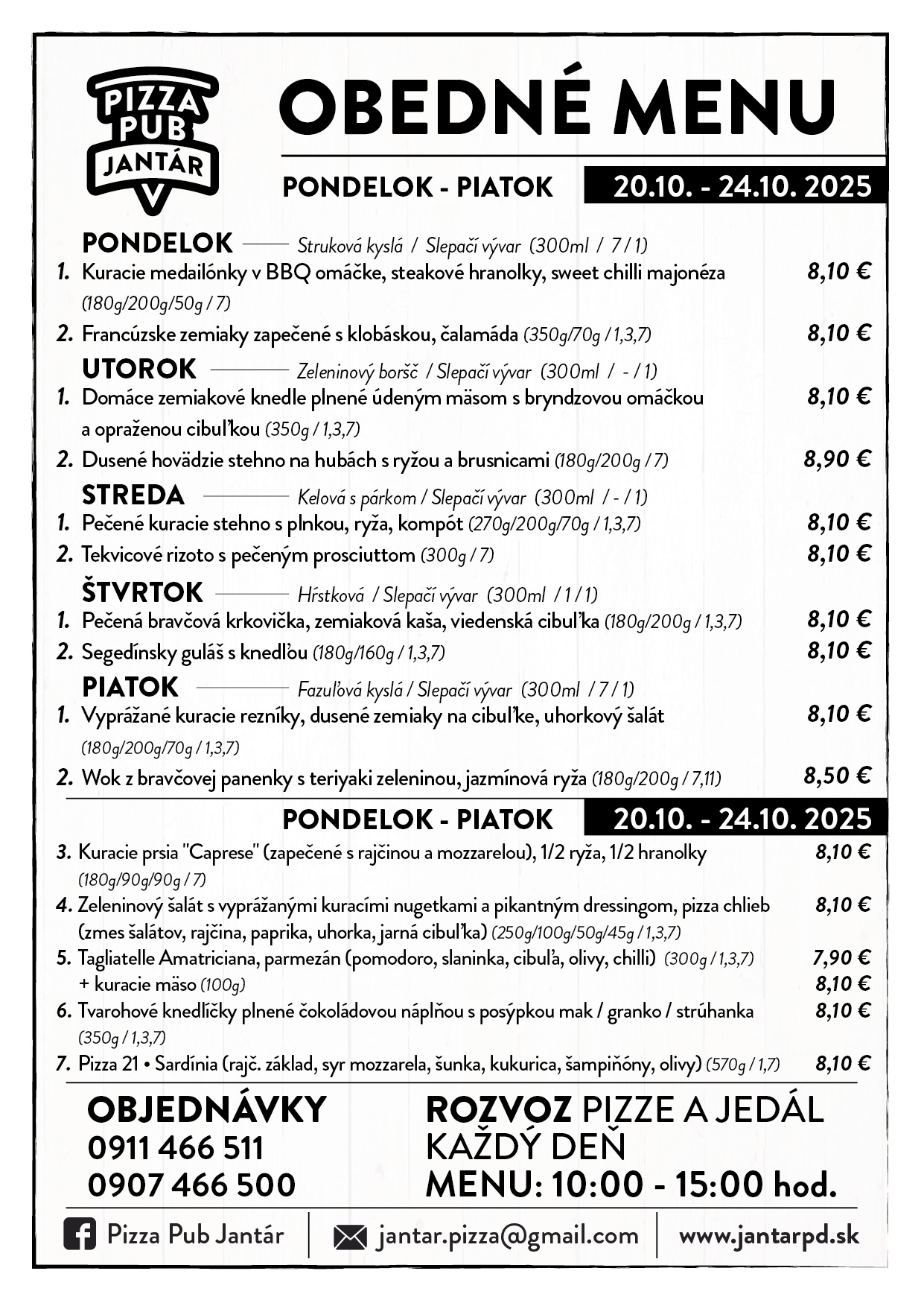 Jedálny lístokOBEDOVÉ MENU 20.10.2025 - 24.10.2025
