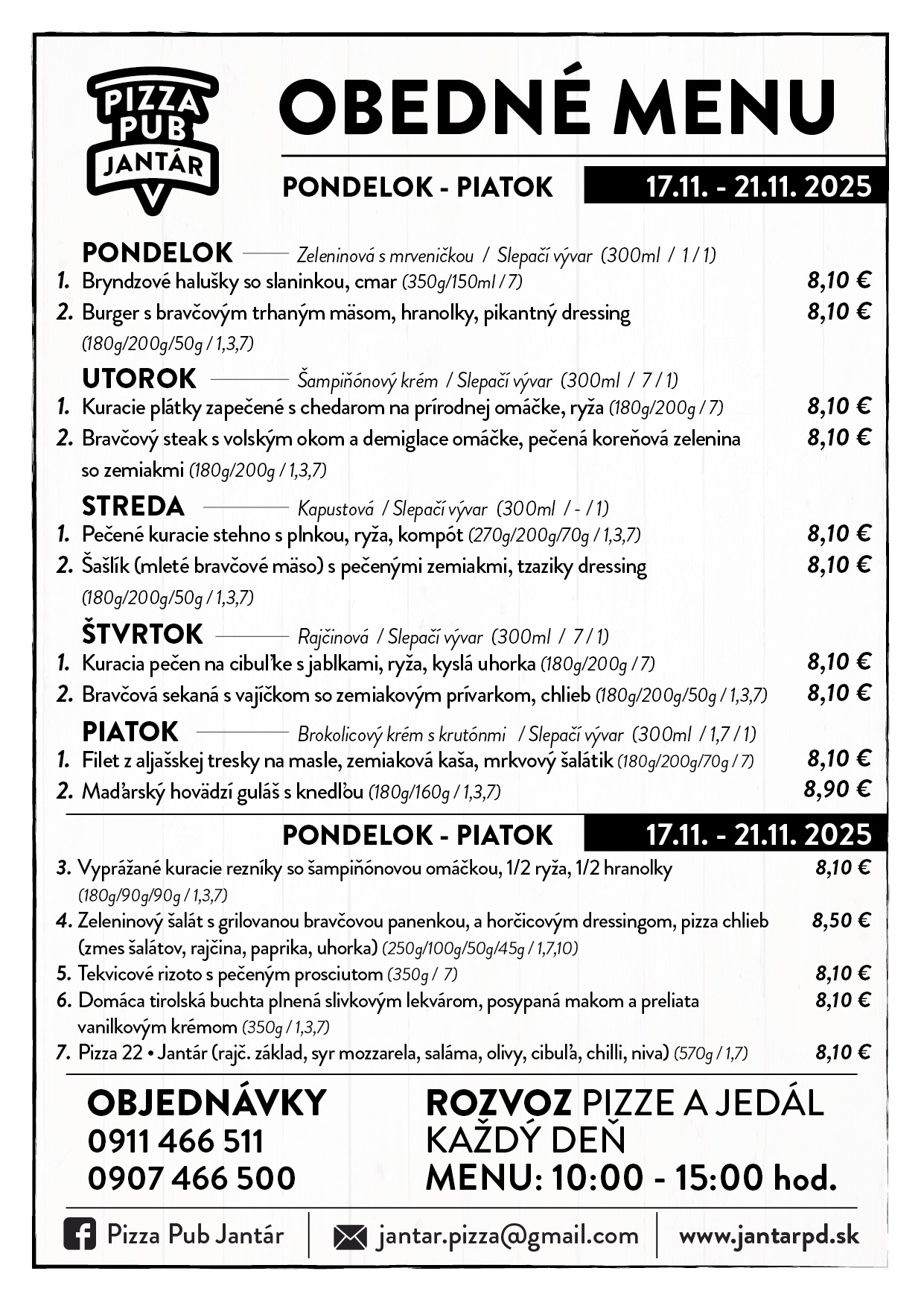 Jedálny lístokOBEDOVÉ MENU 17.11.2025 - 21.11.2025