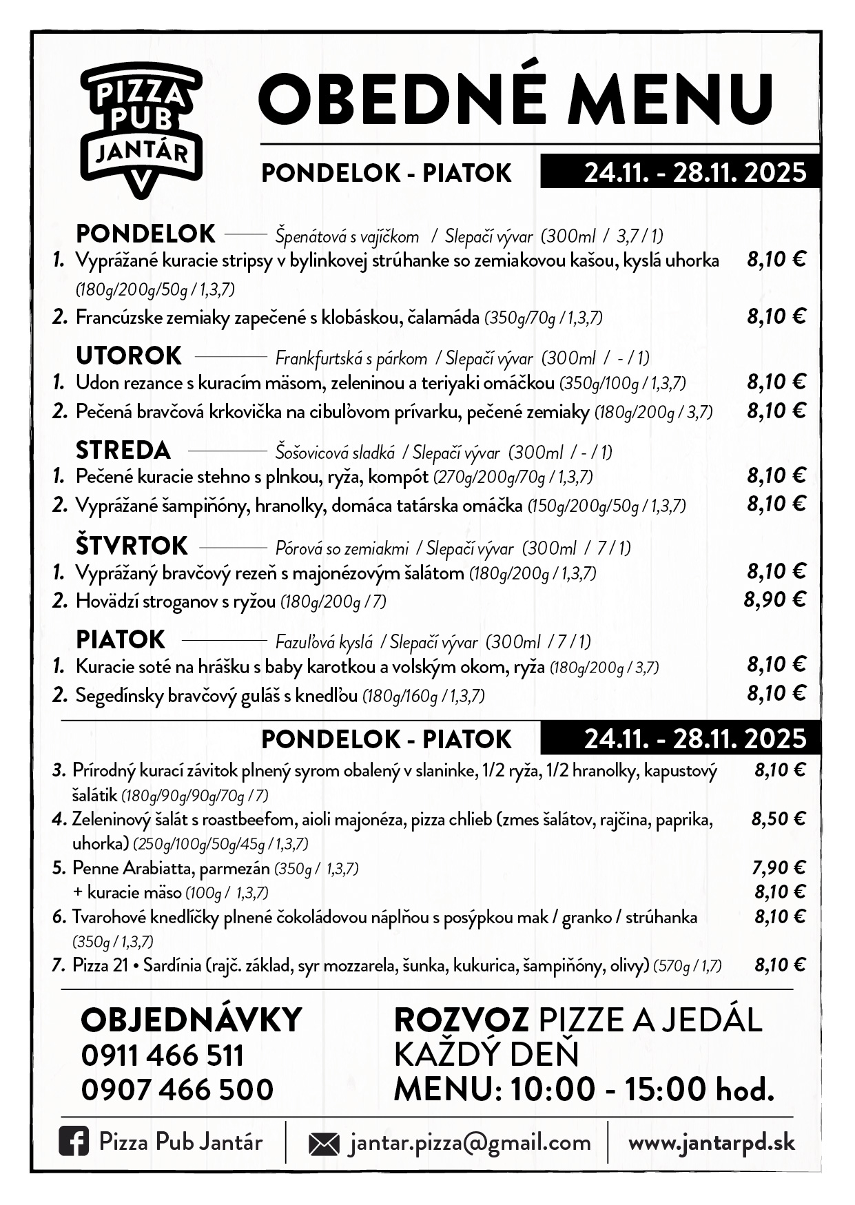 Jedálny lístokOBEDOVÉ MENU 24.11.2025 - 28.11.2025