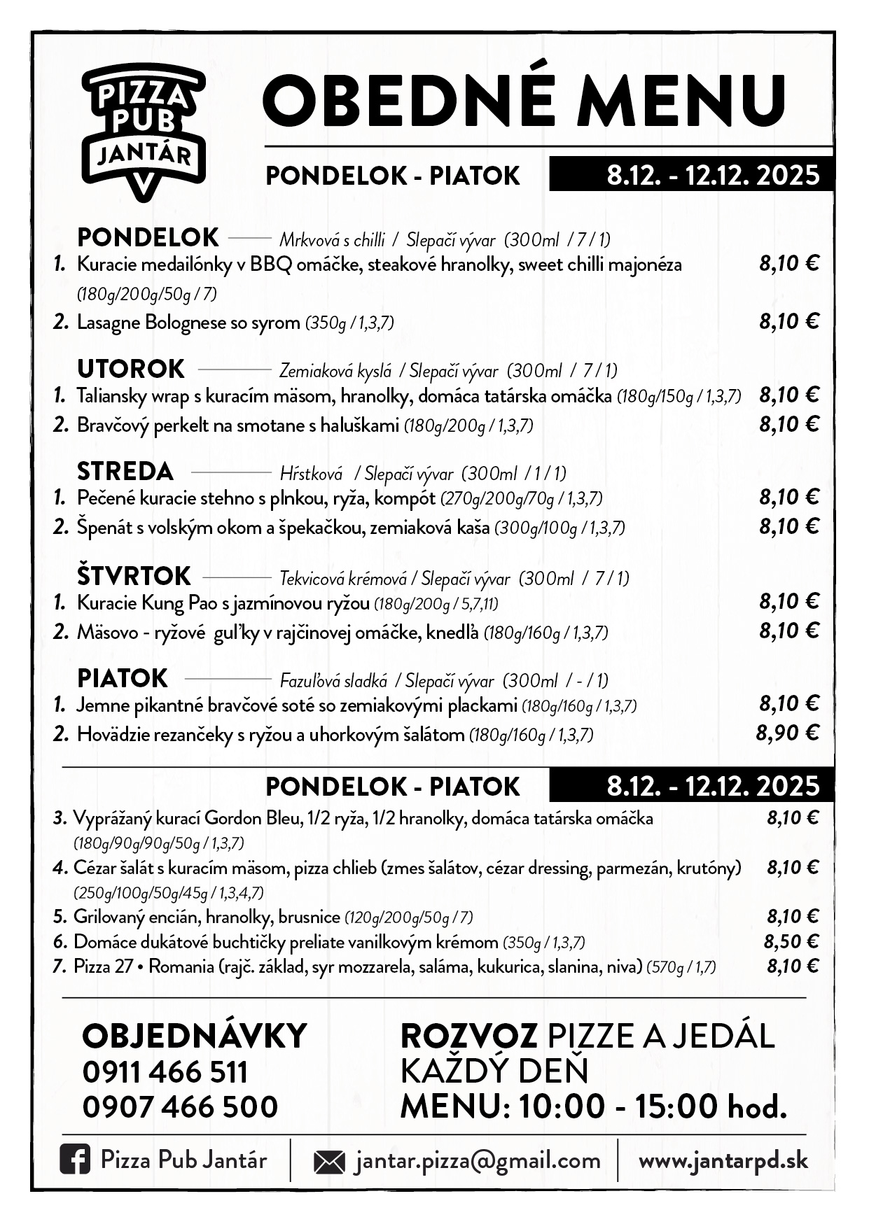 Jedálny lístokOBEDOVÉ MENU 08.12.2025 - 12.12.2025