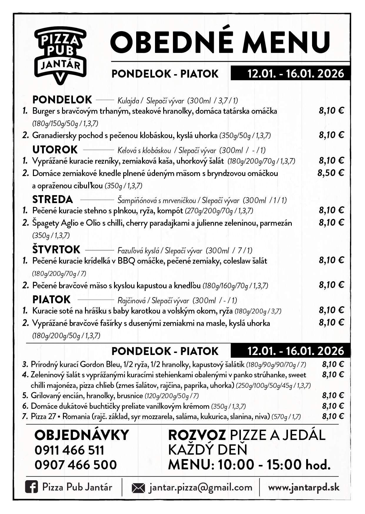 OBEDOVÉ MENU Pondelok 12.01.2026 (10:00-15:00)