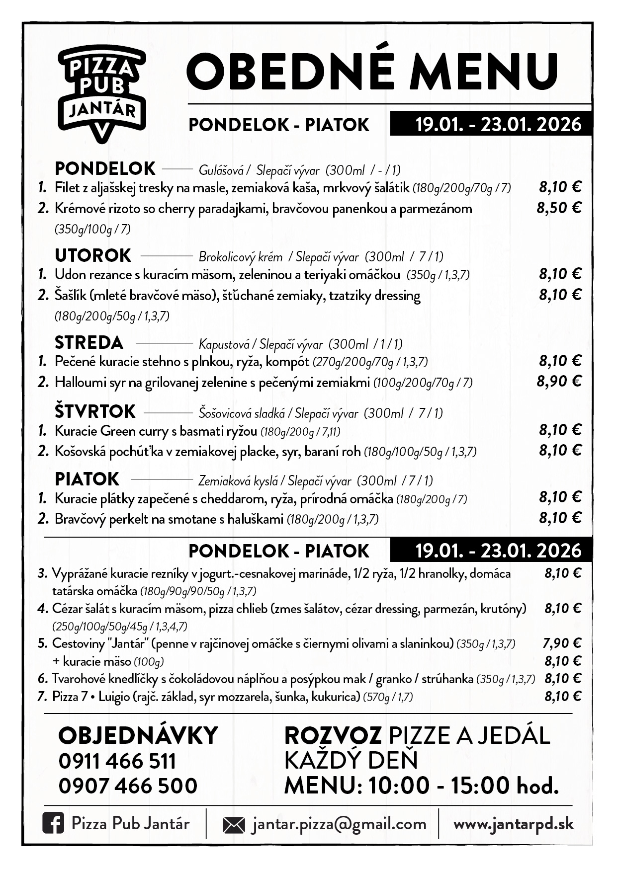 OBEDOVÉ MENU Piatok 23.01.2026 (10:00-15:00)