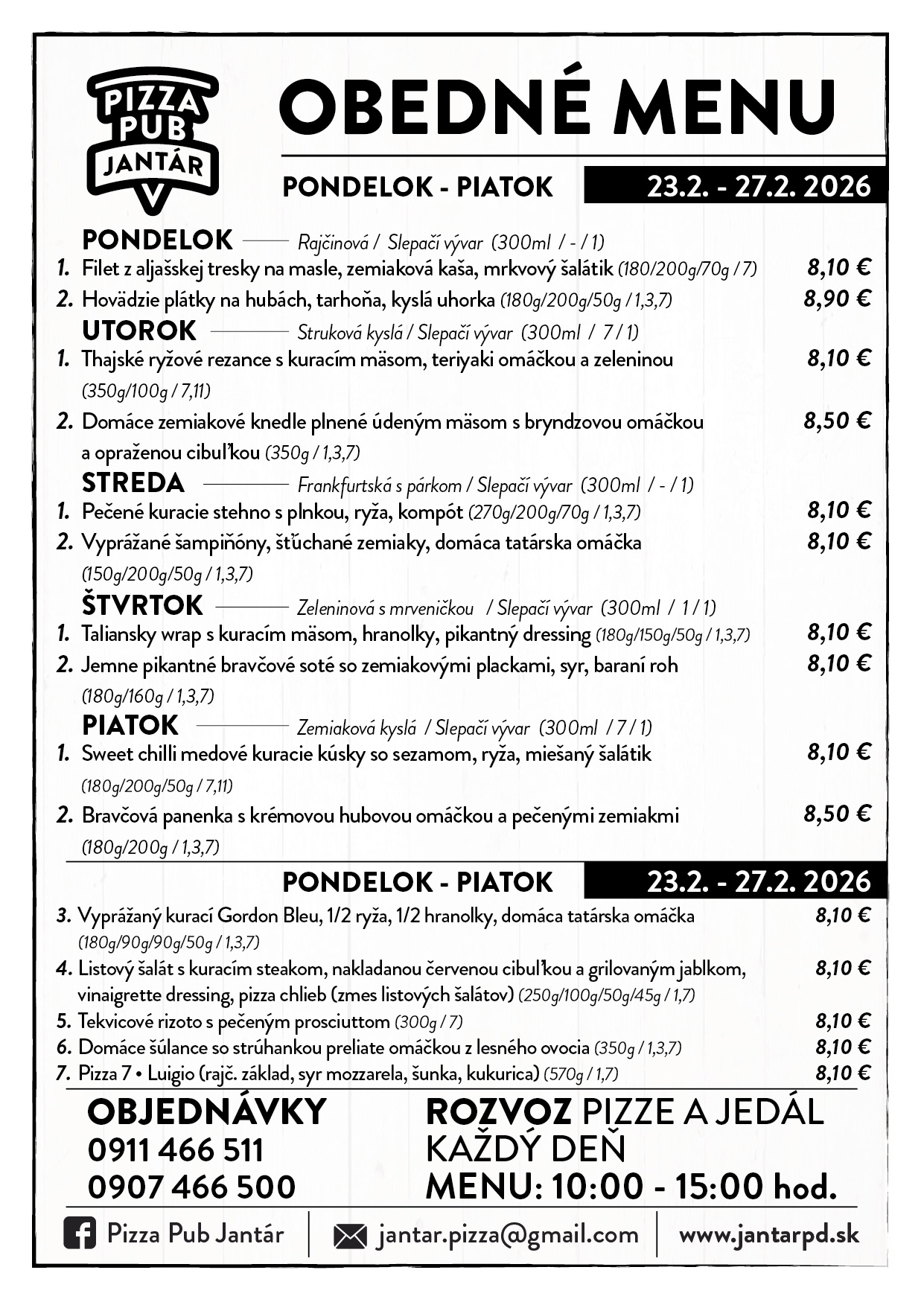 Jedálny lístokOBEDOVÉ MENU 23.02.2026 - 27.02.2026