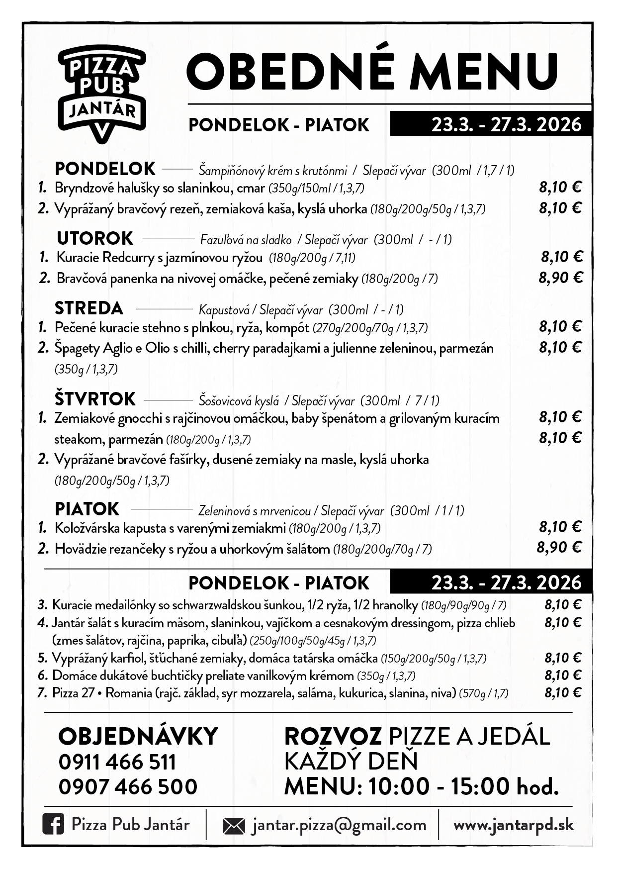 Jedálny lístokOBEDOVÉ MENU 23.03.2026 - 27.03.2026
